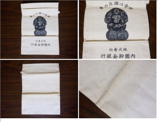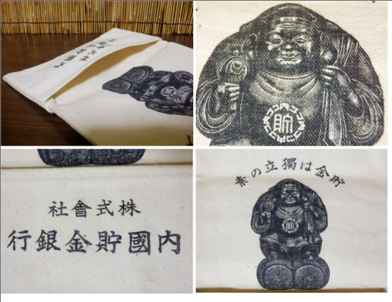 内国貯金銀行(協和銀行の前身)のノベルティ布製財布、大黒天様のプリントも雰囲気良く、状態も実際に使用するのに問題ない程度でオススメの一品です!!