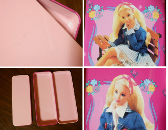 バービーファン必見、2段式トレイ付きの缶ペンケースです!!