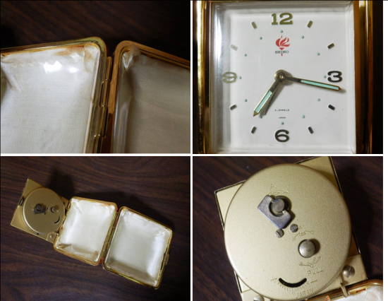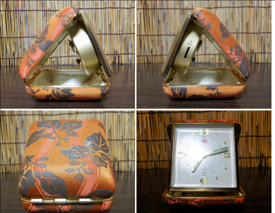 人気レトロアイテムのトラベル時計、ケースに和柄の布地が巻かれた珍しい一品です!!